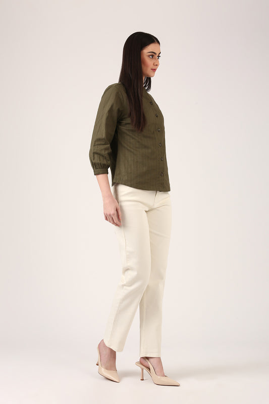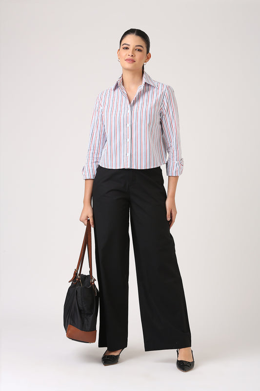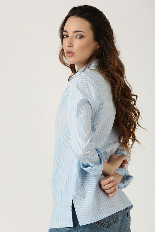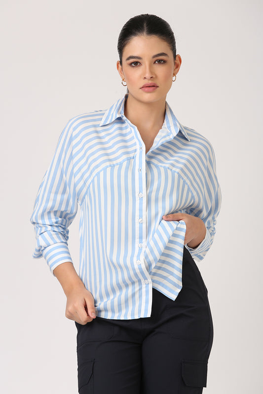 Blue Breeze Crop Shirt – Women’s Lightweight Striped Modal Shirt