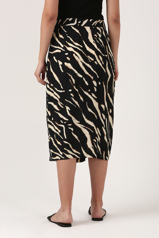 Black Printed Wrap Skirt