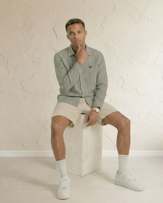 Olive Stripes Full Sleeve Soft Linen Men's Shirt