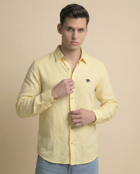Cream Gold Full Sleeve Soft Linen Men's Shirt