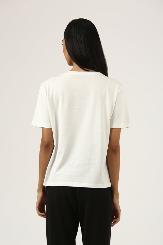 V-Neck Rich Cherry T-Shirt With Side Slit