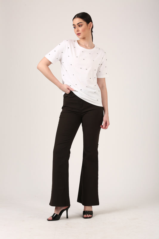 Flare High Rise Jeans-Ecru
