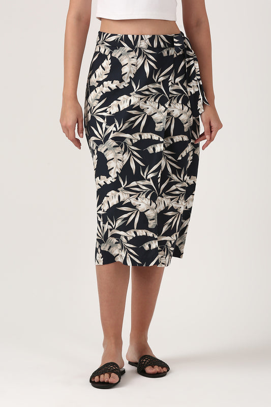 Tropical Printed Wrap Skirt