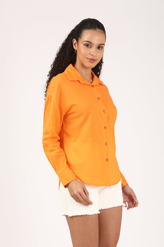 Deep Rust Cotton Double Cloth Crinkle Oversized Shirt