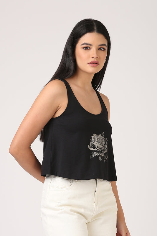 Cotton Black Printed Sleeveless T-Shirt