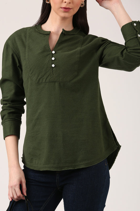 Olive Green Raw Edge Top