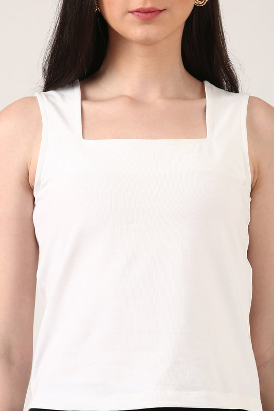 White Luxe Square Neck Top
