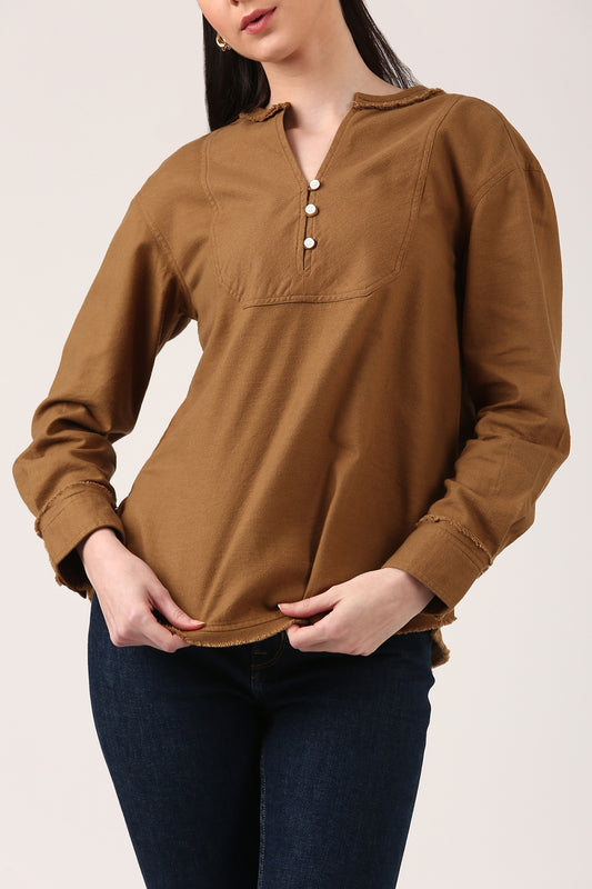 Dijon Brown Raw Edge Top