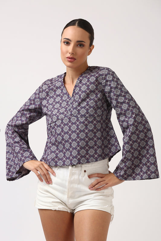 Charcoal Printed Flare Sleeve Top