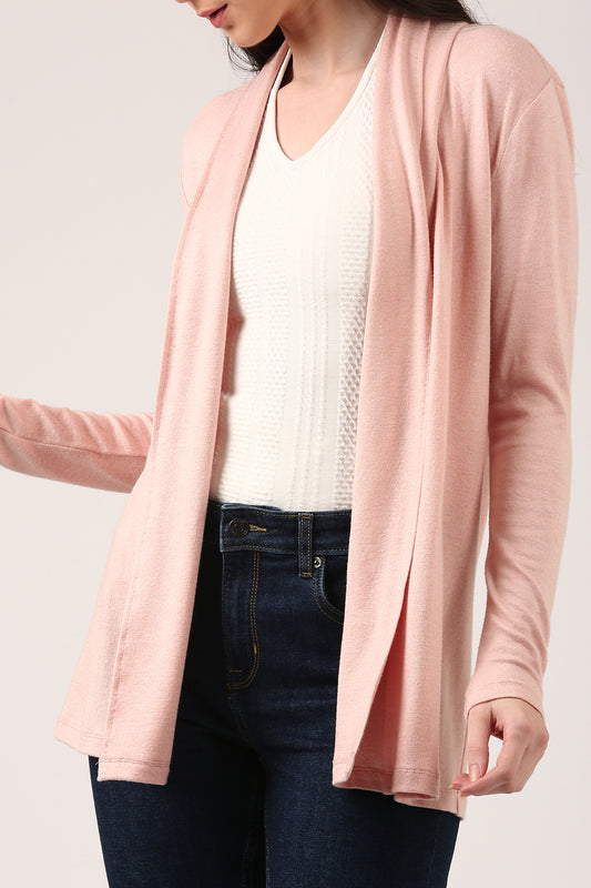 Light Pink Women’s Shrug – Full Sleeve Open Front Cardigan for Layering