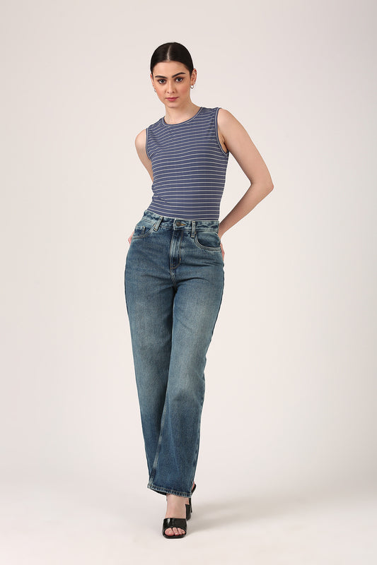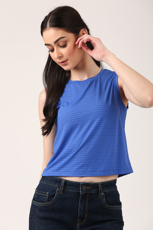 Slate Blue Striped Sleeveless Tank Top