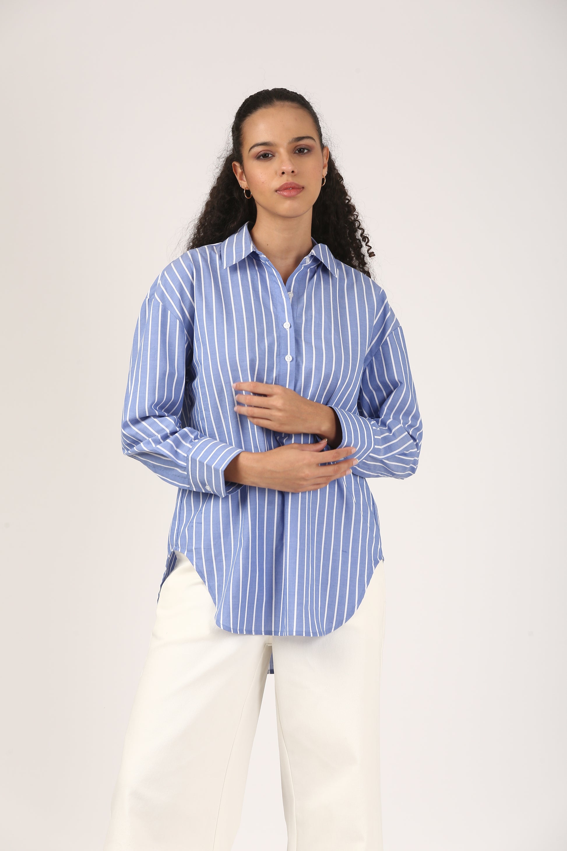Woven in premium cotton from Erode, the Stripe Popover Shirt is designed with a half-button placket and relaxed silhouette that balances heritage with modern ease. The vertical stripes add quiet definition, while the breathable cotton keeps it effortlessly wearable through the week and beyond.