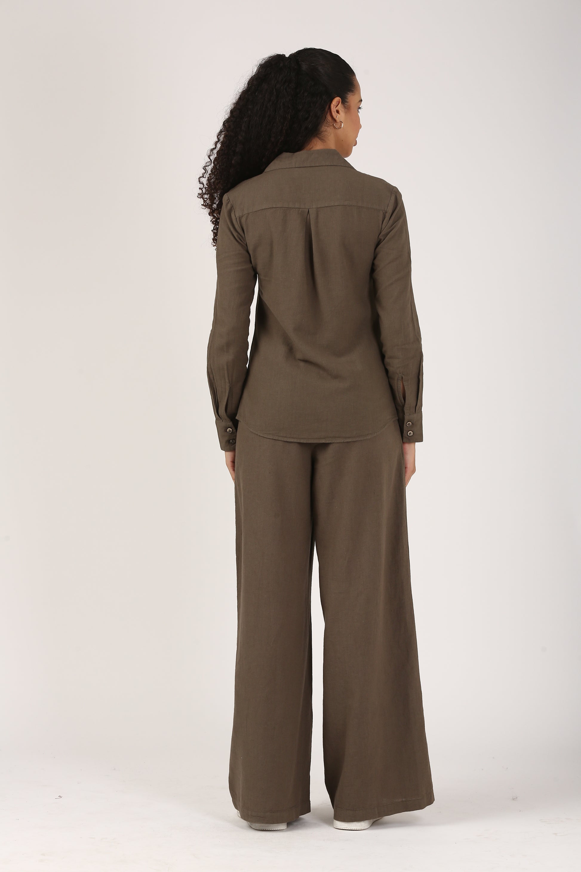 Effortless and modern, the Olive Linen Flare Pants bring a fresh tone to your wardrobe. Made from high-quality breathable linen, these relaxed-fit pants are lightweight, absorbent, and perfect for warm-weather comfort. The flare-leg cut, elastic waistband, and practical side pockets make them as functional as they are stylish. Pair them with the Olive Lapel Collar Shirt for a sophisticated linen coord set for women that transitions seamlessly from day to night.